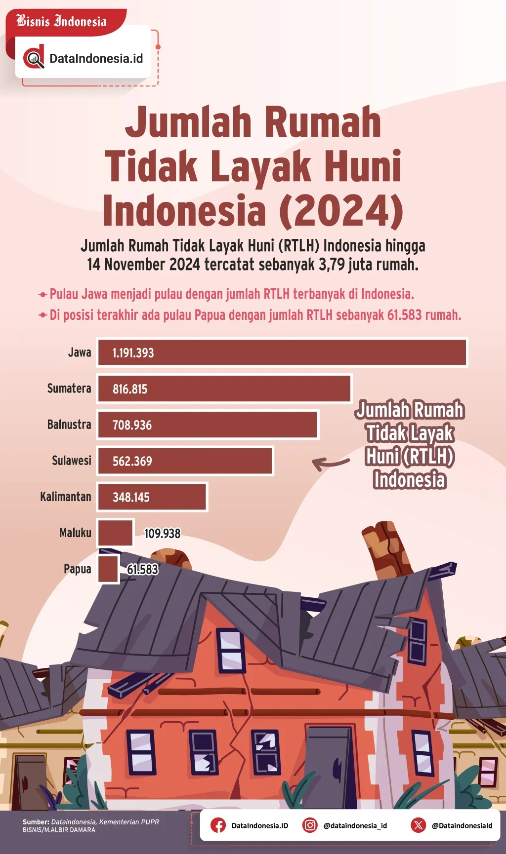 Menurut data BPS 2024, 34,75% keluarga di Indonesia masih tinggal di rumah tidak layak huni (RTLH). Artinya, dari 100 keluarga, 35 di antaranya menempati rumah yang kondisinya memprihatinkan (Source: kompas.com) Lebih memprihatinkan lagi, data dari DataIndonesia.id dan Kementerian PUPR mencatat bahwa Pulau Jawa menempati urutan pertama dengan jumlah terbanyak rumah tak layak huni (RTLH) di Indonesia, yakni 1.191.393 unit.